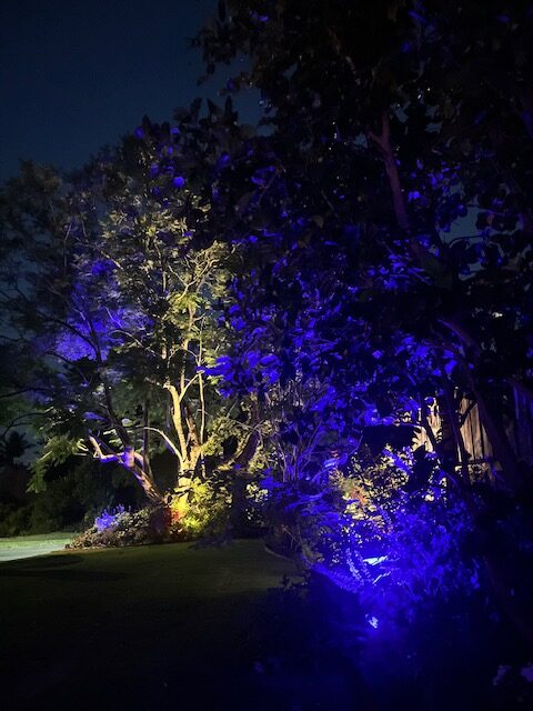 You can also light up fruit trees the same colour as the fruit so the fruit really pops, or simply increase the brightness of a fixture as the trees grow taller.